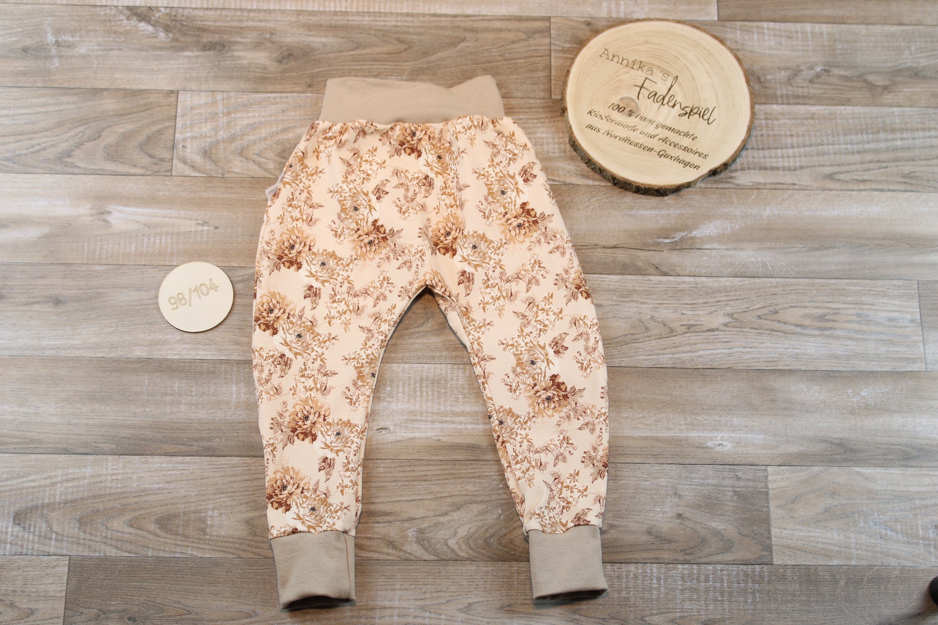 Jersey Hose Blumen beige